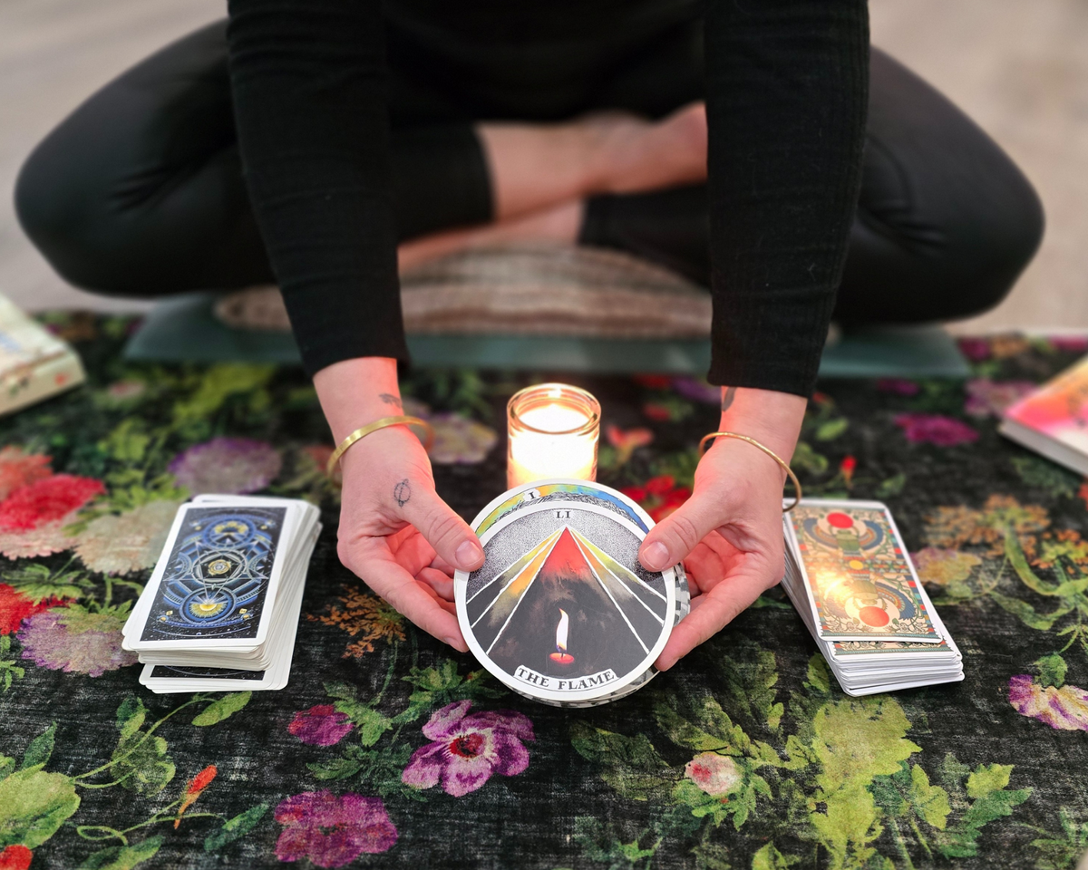 Restorative yoga is a gentle, floor-based practice designed to calm and soothe your nervous system. We spend 5 - 20 minutes in each cozy pose, supported by blankets, bolsters, and the earth beneath us. Appropriate for all levels, especially beginners. Tarot cards contain symbols and archetypal images that can be powerful tools to dig deep into the meanings of your actions, feelings, thoughts, and energy - helping you access and connect to your inner wisdom.